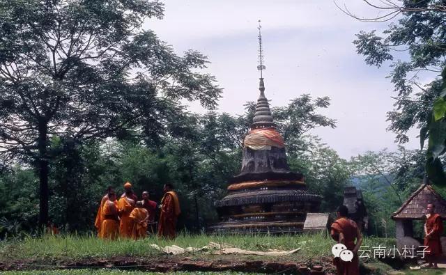 ↑在景洪城区东南,沿澜沧江而下约七八公里的猴山,一幢不寻常的建筑物会出现在你的面前。这就是曾经的“傣王宫”——“召孟香勐”。宫殿已经荒芜了数十年,但依旧在每一根柱子上印证着当年的辉煌。从前,这个称为宣慰街的地方,分布着曼岗景、曼东、曼空章、曼帕萨、曼勒、曼瓦、曼嘎、空柯等8个寨子,设有一个称为宣慰街的集市。曼岗景是宣慰街的中心,建有西双版纳最高统治者召片领的寝宫和议事庭,宣慰街附近建有5座佛寺、3座宝塔。宣慰司署是干栏式建筑,其形状、结构与傣族民间居住的竹楼大同小异。昔日的宣慰司署所在地,地势宽阔,靠近澜沧江边有块可容纳数百人的草坪,可以在上面踢足球、赛马、赶摆。后来由于澜沧江洪水泛滥,江流改道,使宣慰街不断遭灾,渐趋荒凉,那些富丽堂皇的宫殿与佛寺成为了废墟,只剩下了两座佛塔,一座叫塔庄董、一座叫塔庄盂。