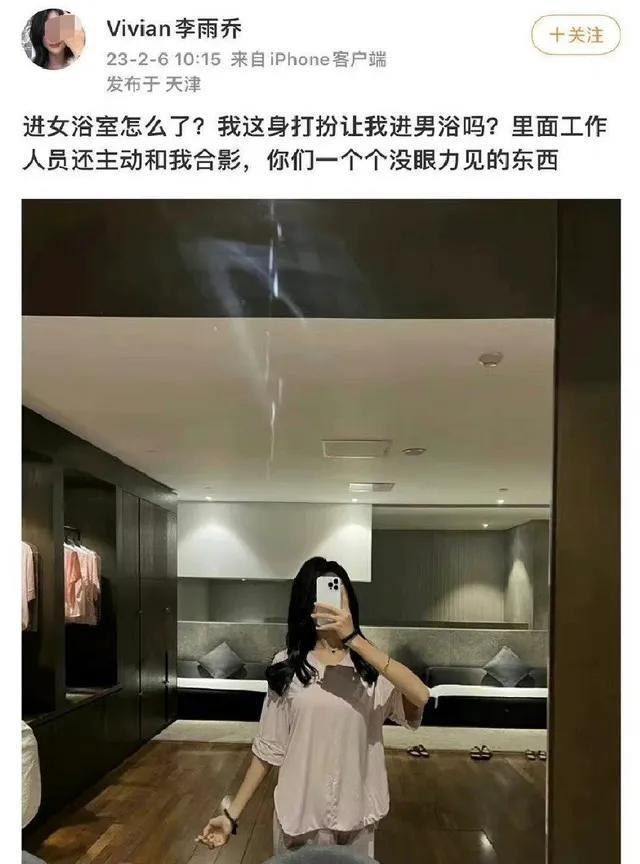 网红李雨桥过分的一件事,就是男扮女装进了女浴室。不仅没有任何悔改,还主动在更衣室里拍照片,发到各个平台上蹭流量,搏出名。