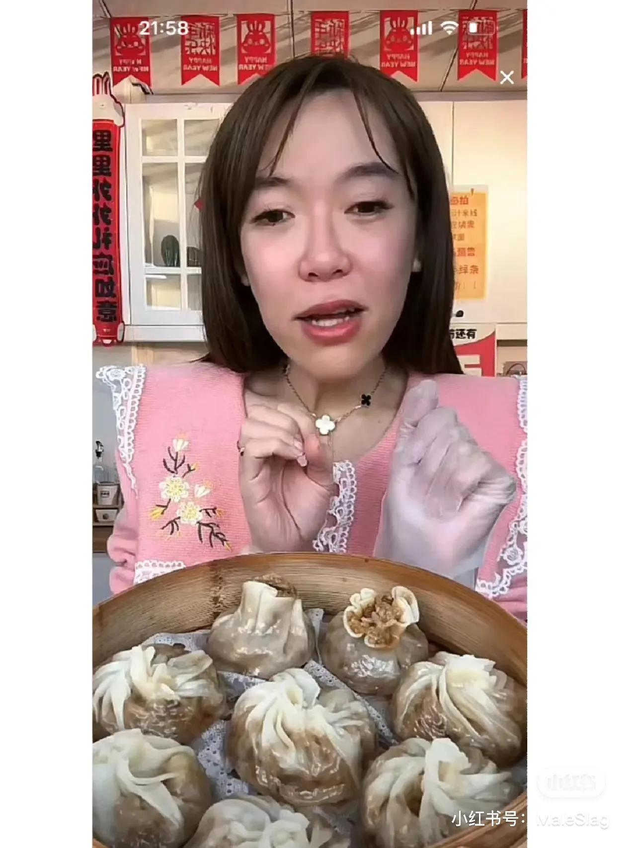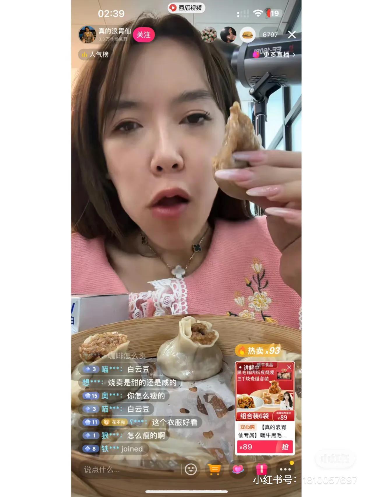 然而这并不是浪味仙第一次穿女装。在他的直播间里,他的每次吃播亮相,都是穿着不同风格的女性衣服。