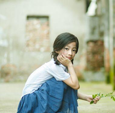 梳着过肩直发的十岁小女孩,夏天的时候妈妈将女孩的直发编织成最简单的双麻花辫,穿上复古民国风裙装,整个人看起来文艺而清新,温婉动人的小淑女形象给人好感。