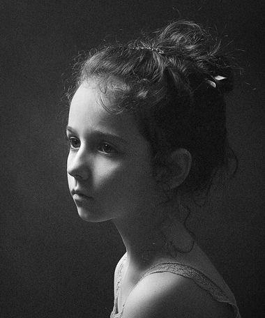 十岁大的小女孩梳着自然卷长发,卷曲凌乱的发饰不适合披散下来,尤其是在夏天,将长卷发聚集在发旋位置,盘成凌乱简约的花苞头形状,完全展露女孩稚嫩秀美的小脸,整个人有着与年龄不符的优雅气质。