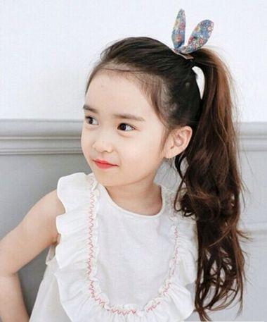 这款孩子长卷发无刘海漂亮梳发造型设计是梳的高高的马尾辫,有着孩子的甜美可爱感存在,看上去是那么的活泼漂亮,增加了潮流时尚感的孩子卷发梳发的造型设计。