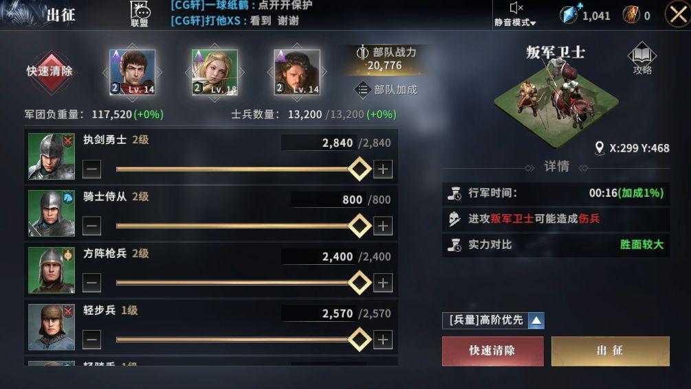 在野外地图中,有非常多的资源。这些玩家自行在游戏中体验,红姐要说的是在攻打野外资源“便捷的配兵”设置。玩家可以一键选择出征的英雄和兵种,系统会有战力提示。这种简单的操作还是比较适合懒人或者忙的玩家。