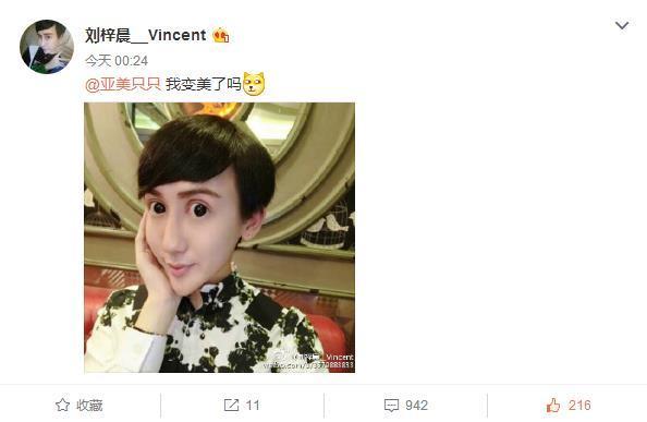 刘梓晨之前曾在微博曝光儿时照,反驳整形说法:“我从没做过任何整容手术或微整,连玻尿酸都从来没打过好么?