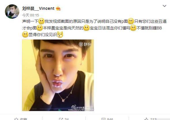 今天4月23号凌晨,在不雅视频流出后,刘梓晨并未对不雅视频做出解释,反而声明一下“我发视频截图的原因只是为了说明自己没有p图只有您们这些丑逼才会p图本梓晨宝宝是纯天然的宝宝日法混血你们懂吗不懂就别瞎BB显得你们没见识。”