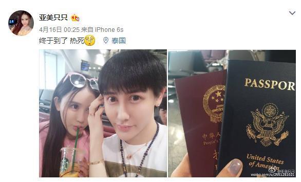 但是在其好朋友,也是不雅视频女主角的亚美只只的一张图片引起了波比的关注呢。在4月16号由其发布的微博中,亚美只只PO出了两张图片,一张是她和刘梓晨的亲密合照,另一张是秀出了的两本护照!!