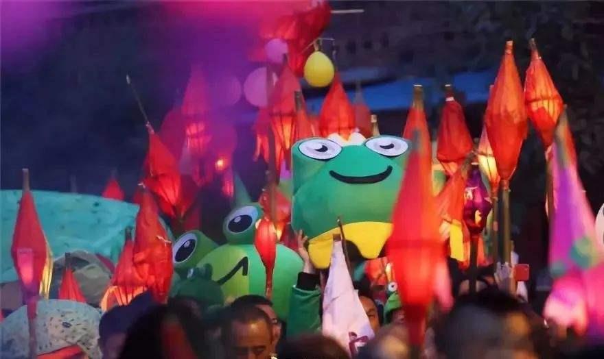“十四夜,送蛴蟆儿,蛴蟆儿公,蛴蟆儿婆,把你蛴蟆儿送下河”。蛴蟆儿是四川放盐,意思是青蛙,每逢正月十四,人们会敲锣打鼓,举着“蛴蟆儿”灯笼,带着消灾祈福的心愿走出家门,然后将灯笼插在田间地头,以此来祈福保平安。
