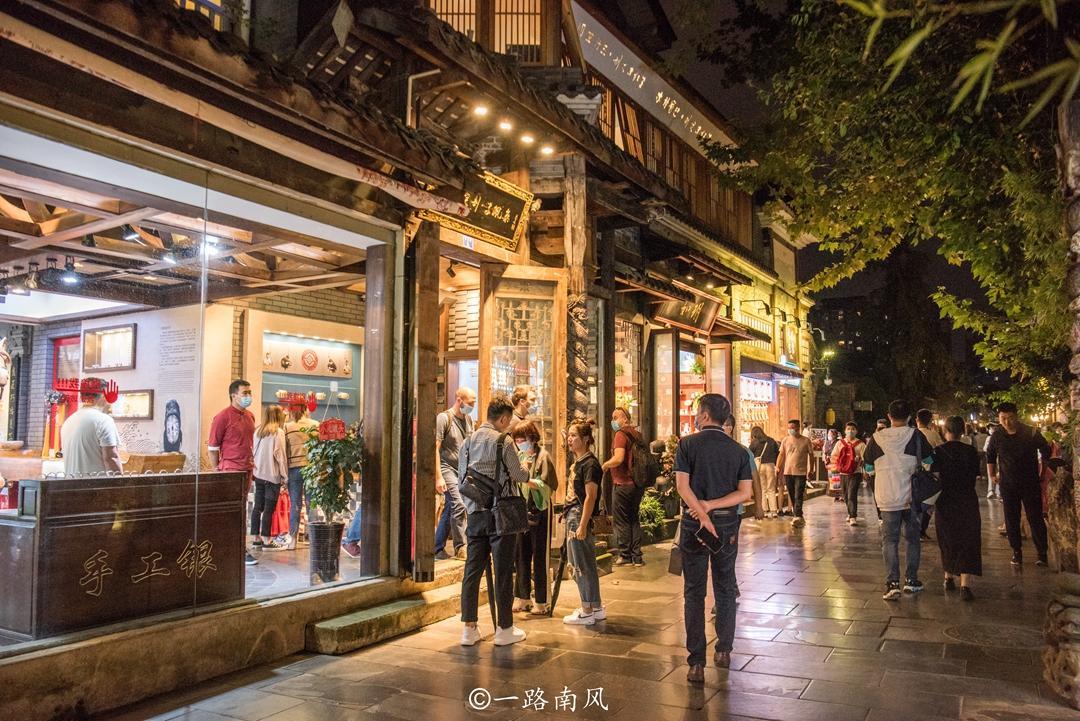 每逢周末和节假日,宽窄巷子总是人山人海,相对来说晚上的景色更加养眼,人气也更旺。