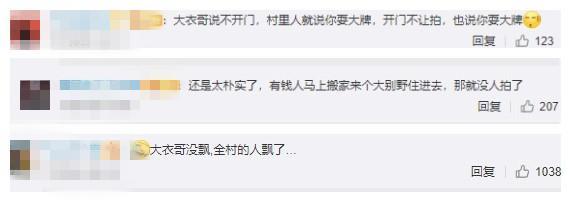 不少网友看见了也都表示无语:“大衣哥没飘,全村人飘了”“还是太朴实,搬个大别墅,你看还有人拍吗?”