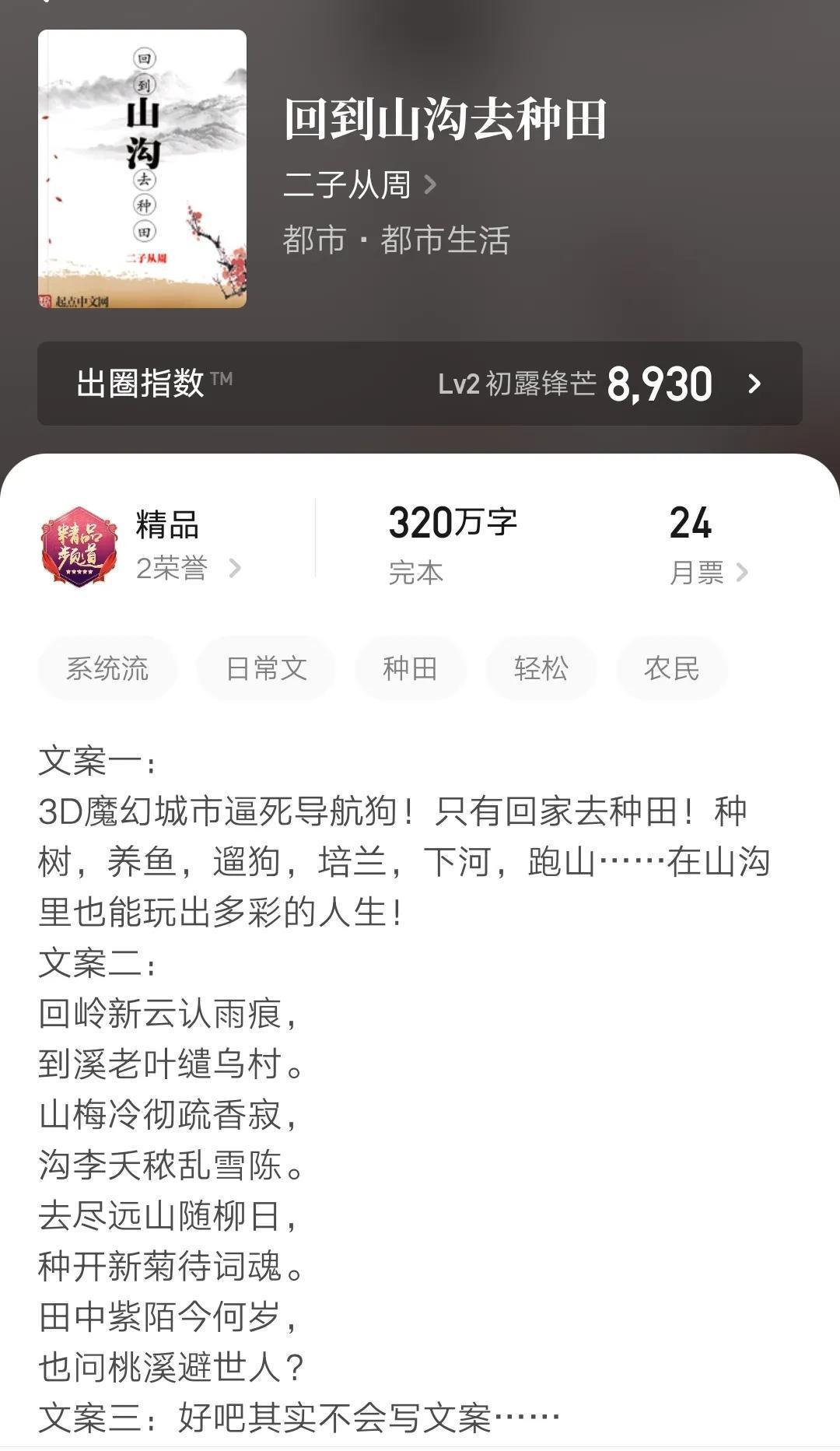 这本是十年前的小说了,也是很多读者的种田文入坑之作,现在看难免有瑕疵,但当年真的惊艳了很多人。