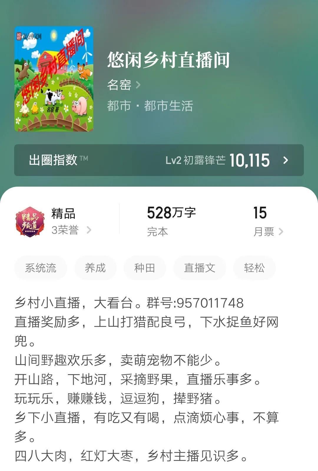 随着网文的发展,种田文也融入了很多现代科技元素,比如这本直播间。已经不是以前传统种田文的简单有个空间,获得宝物传承之类,更是加入了高科技元素。