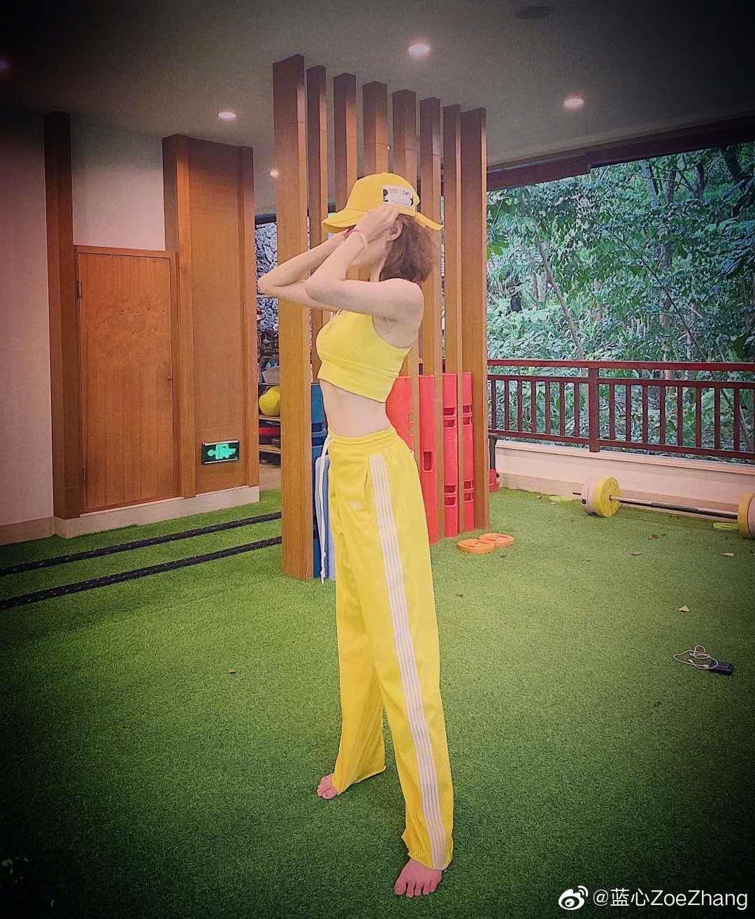 其实生活中张蓝心真的经常都是在健身房的照片,很多时候我们都会非常喜欢韩范的穿搭但是很多时候简约的运动装也可以穿搭非常好看的造型今天就来说说运动装的造型怎么穿搭出非常时尚的感觉,首先就是颜色,很多时候我们都会下意识的选择比较简约的黑白两色,但是这样的颜色会让整个人的穿搭看上去没有什么亮点也就不会有非常时尚的感觉了,所以首要就是要挑选这非常底盒自己的比较亮眼的颜色,比如说张蓝心选择的这个look就是非常明亮的黄色可以让整个人的造型立刻时尚度up如果不会搭配就可以和张蓝心一样选择成套的look这样也是非常协调好看的