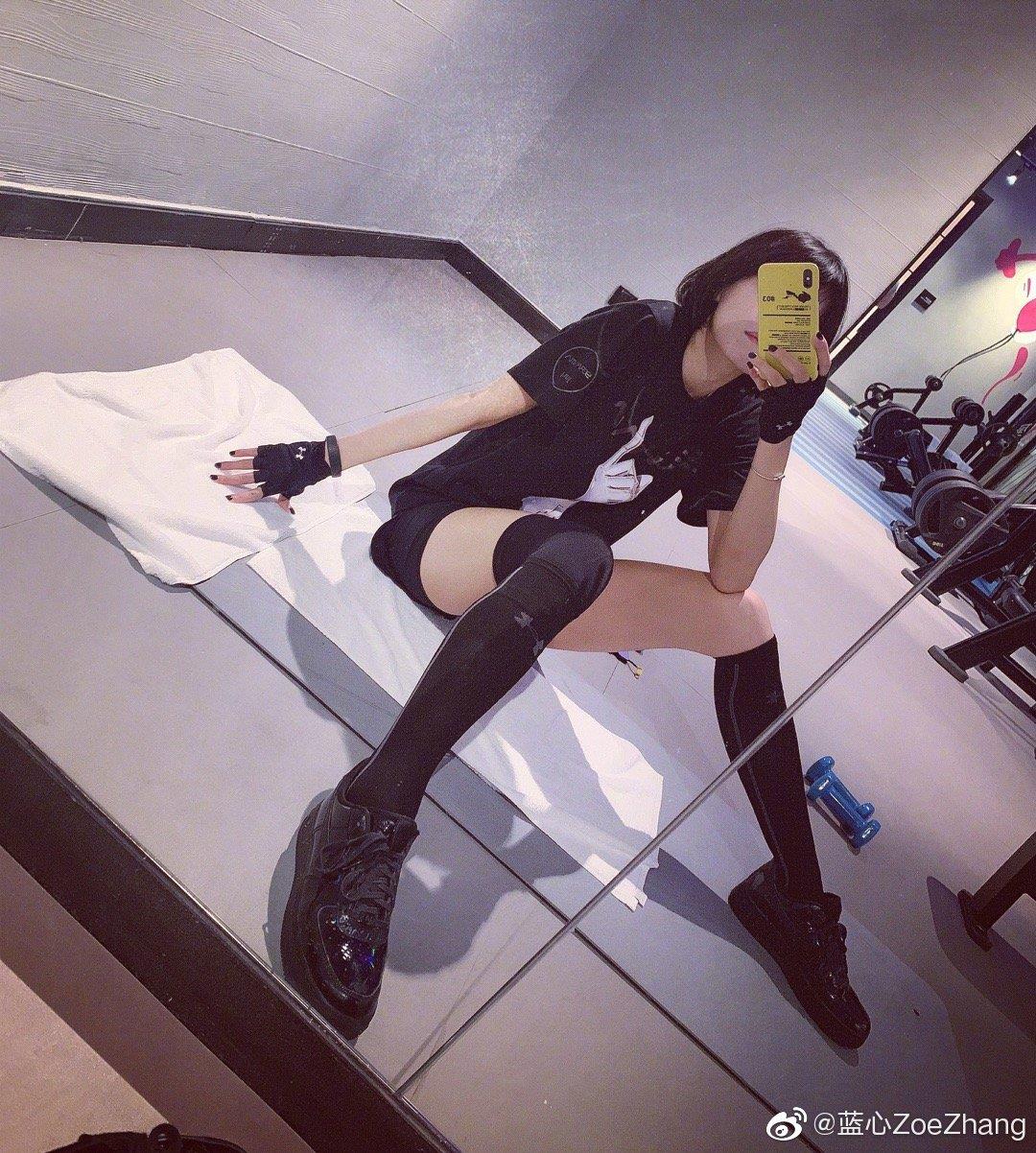 张蓝心太敢了,紧身瑜伽裤显出大长腿和蜜桃臀!完美身材