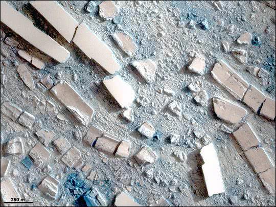 上周拍摄的矩形冰板是飞机在460米高度飞行时拍摄的,显示了南极拉森C冰架外一块巨大的直边矩形冰山,被一些破碎的冰块包围,显得特立独行,绝群拔类。然而不知是摄影师手艺不佳,还是故意留了一手,整个冰山并未显示完全,以至于留下了巨大的想象空间——后半部分究竟是不是矩形呢?怎么可能会出现这种完美几何形状的冰山呢?真的有某种超自然的神秘力量存在吗?或者是外星人的杰作?