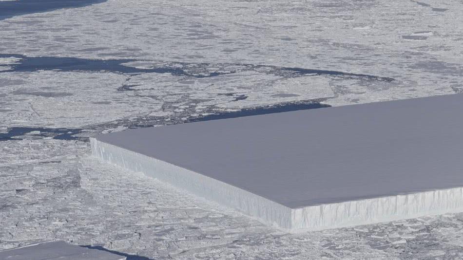 那么这种冰山究竟是如何形成的呢?美国宇航局冰山学家凯瑟琳·沃克说,构成冰山的辽阔冰架悬挂在南极大陆上,有点像从卷尺上伸出的薄薄胶带,时间长了,就会因自身重量而弯曲,最后超过自己支撑能力而断裂,就可能形成这种规则的几何形状的冰山。