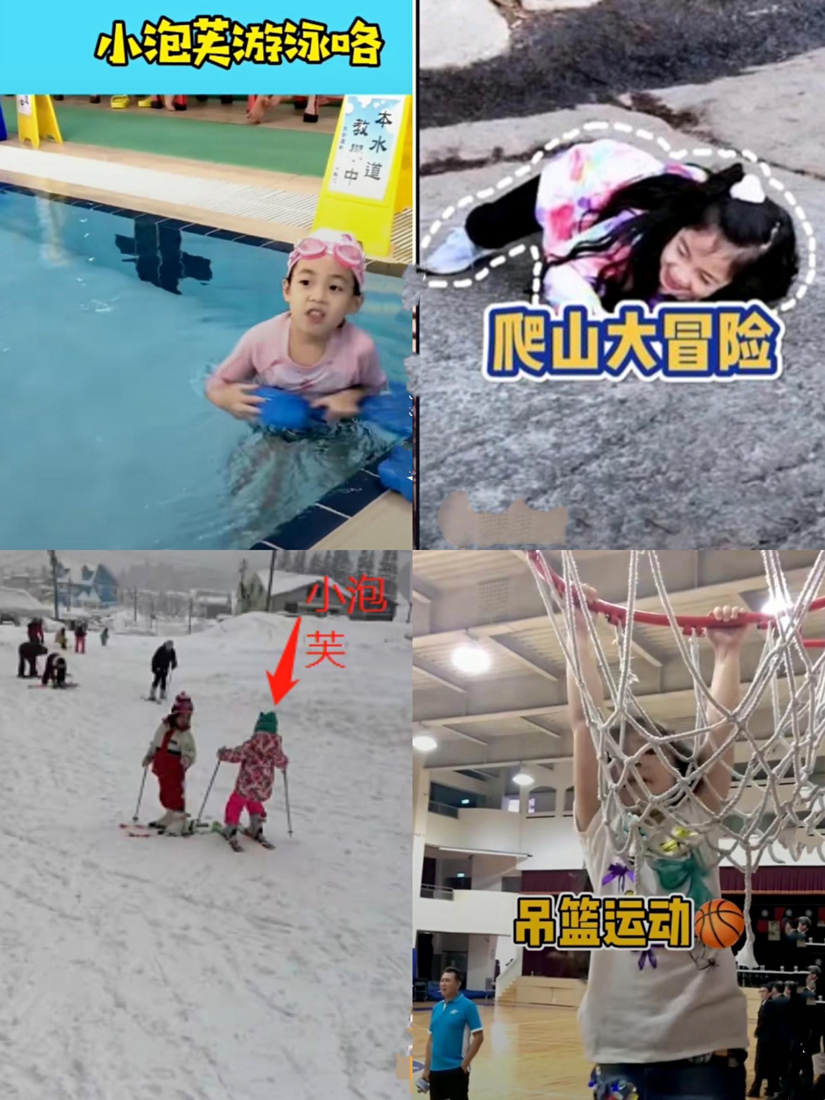 游泳、爬山、吊篮、滑雪等运动也不在话下,不说做的如何,这份敢于尝试的勇气就很值得赞扬。