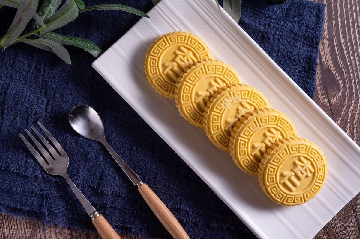 最初形似杏仁,后改为圆形。拥有蟹黄、蛋黄等广受欢迎的口味。