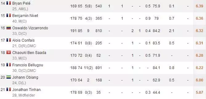 特鲁瓦主要球员数据