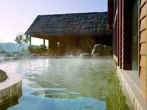 这里温泉水源自地壳深处,渊源千年,泉水日夜喷薄而出、四时不竭,被誉为“特级品质温泉水”。