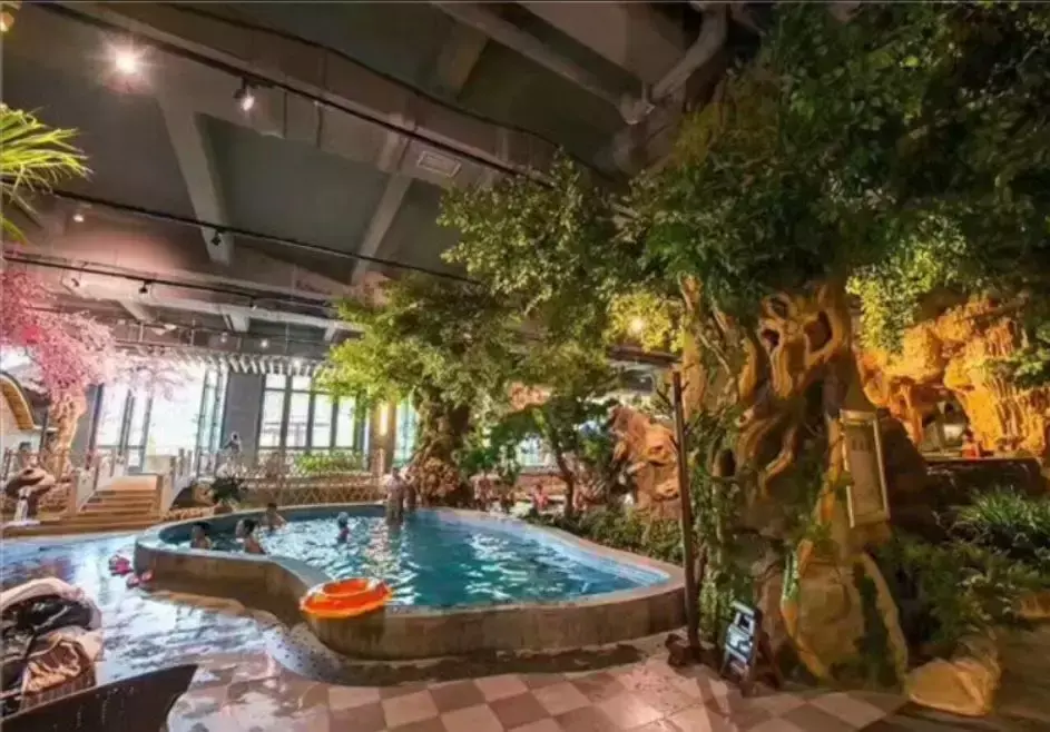 温泉泡池区主要有芦荟浴、花瓣浴、彝族秘药浴、红酒浴、柠檬浴、枸杞当归浴、原浆浴,实现了与自然的完美结合,引领泡汤新概念。