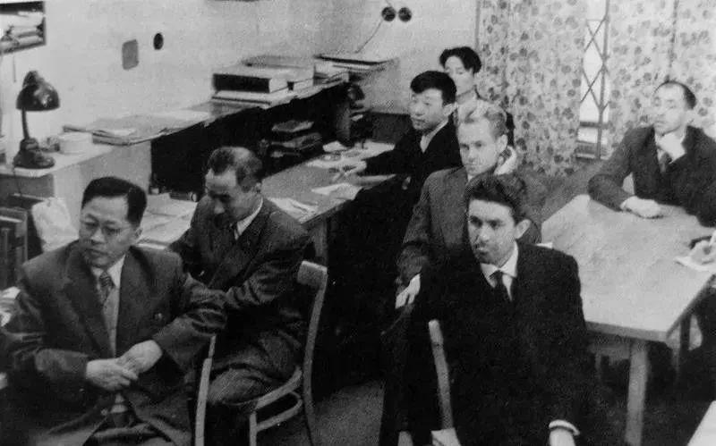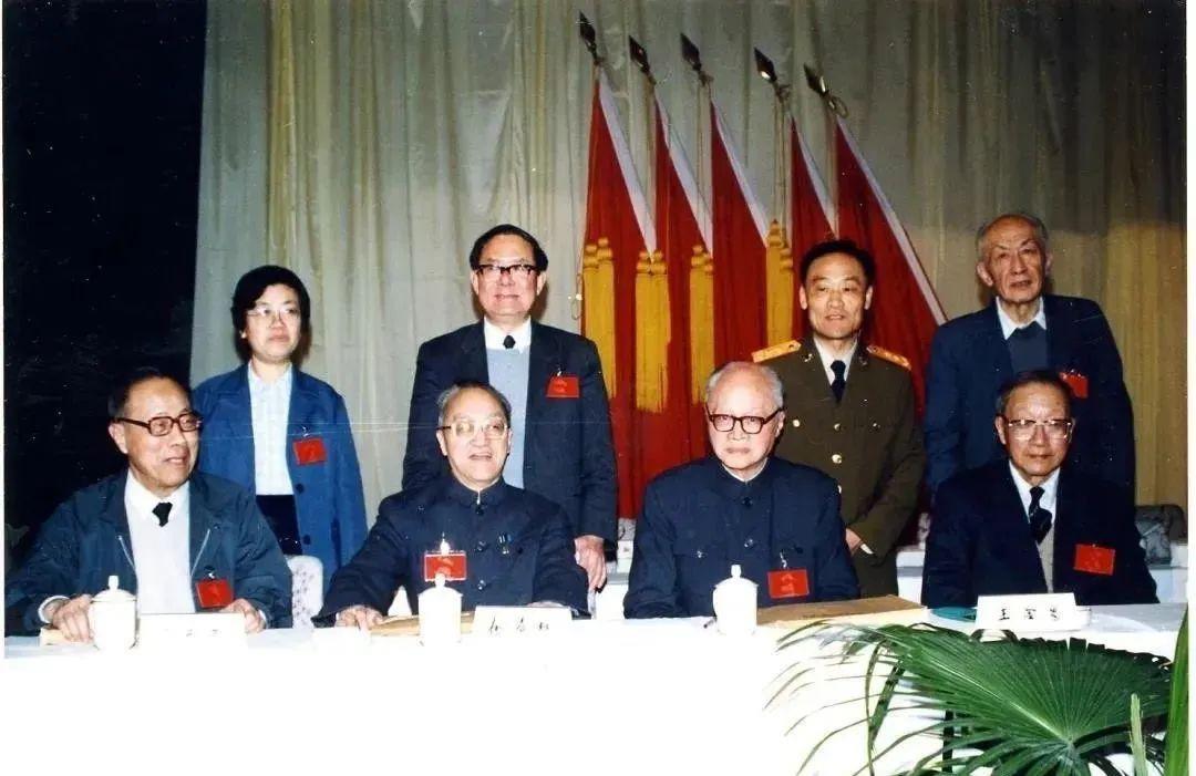 向中央提出发展高技术建议(“863”计划)的四位科学家,前排左起:陈芳允、杨嘉墀、王淦昌、王大珩,后排:朱丽兰、宋健、丁衡高、朱光亚