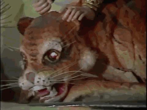 虽如此说,丁海峰说不害怕是假的。毕竟当与一只真老虎对峙,并且还要演对手戏的时候,真实面对的情况与想象中的“演戏”并不一样。丁海峰说,孟老师给他找了两只真老虎……孟繁耀忙说:其实是6只真老虎,另外4只是小老虎。当时也是为了拍戏的需要,设想老虎出去为小老虎觅食,这样显得更加真实一点……丁海峰记得,第一次拍老虎戏时,当那只老虎放进栅栏里,老虎竟然罢演,打了一个呵欠,一下跳出栅栏到一边睡觉去了。后来驯兽师把老虎赶出来,才拍完这个片段。但是这个片段不合格,因此第二次拍“武松打虎”时出场的是另一只老虎。