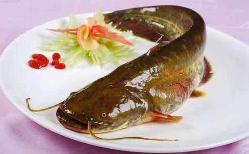 土鲶即本地鲶鱼,体长,后部侧扁,头平扁,口大,口裂未端止于眼前缘的下方,下颌突出,上下颌具细齿,肉食性,多为野生,对水质要求不高,可人工养殖,肉质鲜美,营养丰富,为鱼中珍品。