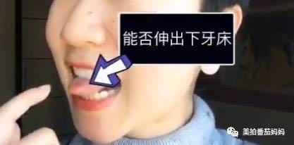 当宝宝哭的时候,大哭或者是伸舌头玩儿的时候,你注意留意下他的舌头能否伸到下牙床的外面。
