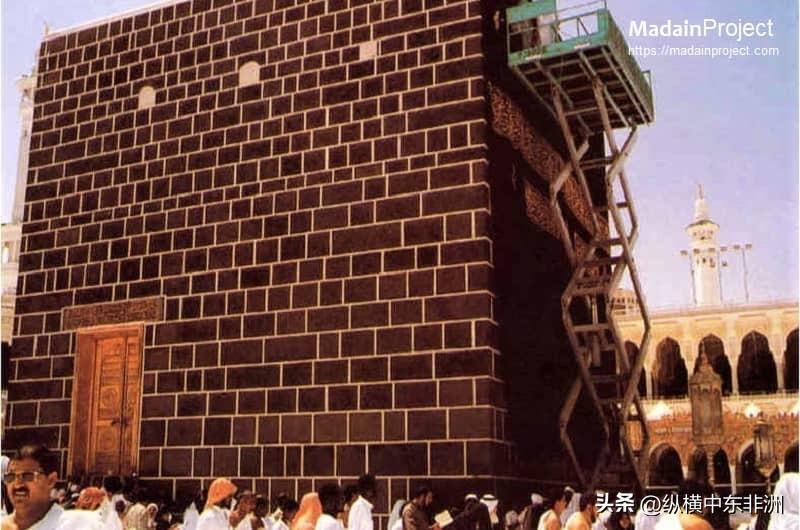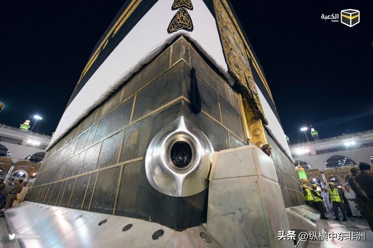 克尔白外部的装饰也很漂亮。只有一个入口。两块石头也保存在克尔白的角落里。其中之一是克尔白黑石。它是从乐园而来,由哈兹拉特·易卜拉欣和哈兹拉特·伊斯梅尔放置在天房的角落。它被发现时,是白色的,但它已经变成了黑色,因为太多的人触摸它并吻它。
