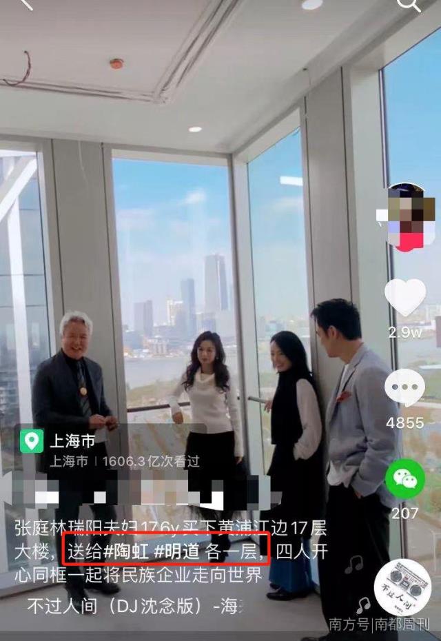 传闻张庭夫妇给明道送了一层在黄浦江的办公大楼。