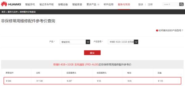 同时我们还可以发现,荣耀8的后摄像头竟然和P9的后摄像头仅差价1元,高达287元,而我们从淘宝上搜索相关配件时可以发现其售价也仅仅只有几十元。考虑到网售配件的不合法性,这个价格或许与实际价格有些许偏差,但我想它已经可以说明很多问题了。