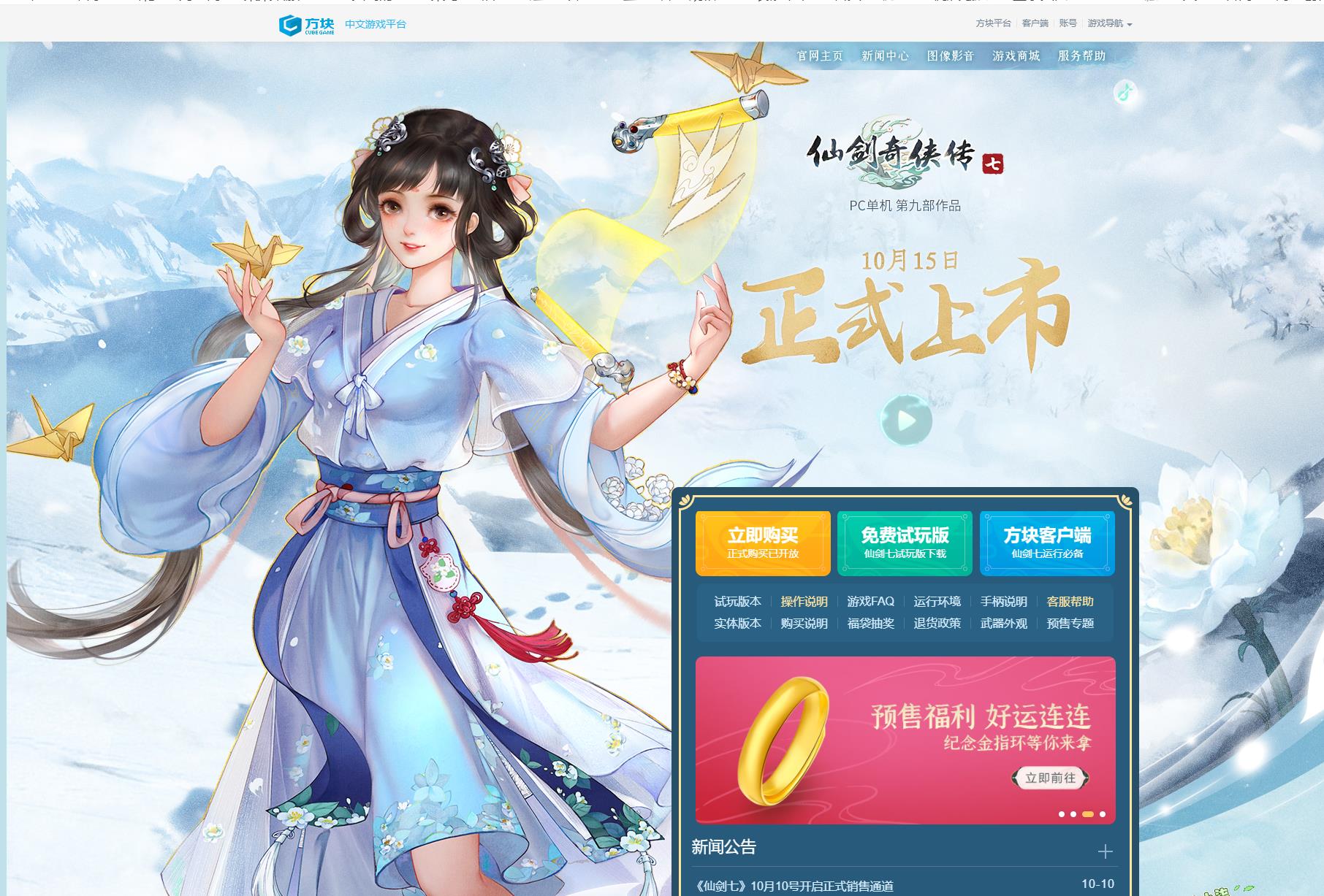 该作是国产单机系列游戏《仙剑奇侠传》的第九部作品,以月清疏、修吾、白茉晴、桑游为主角。由大宇资讯打造的PC单机游戏仙剑系列最新作品《仙剑奇侠传7》试玩版预约日前开启,首批测试名额共10万个,相信已经有不少玩家已经体验了本作。没有预约到的玩家也不必失望,因为目前《仙剑奇侠传7》的试玩版已经上架方块平台,玩家可以免费领取下载体验。
