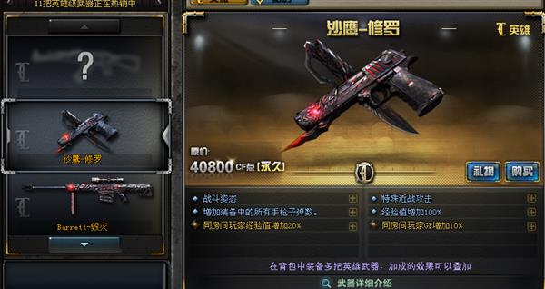 CF英雄级武器沙鹰-修罗官方售价40800CF点,也就是408Q币。