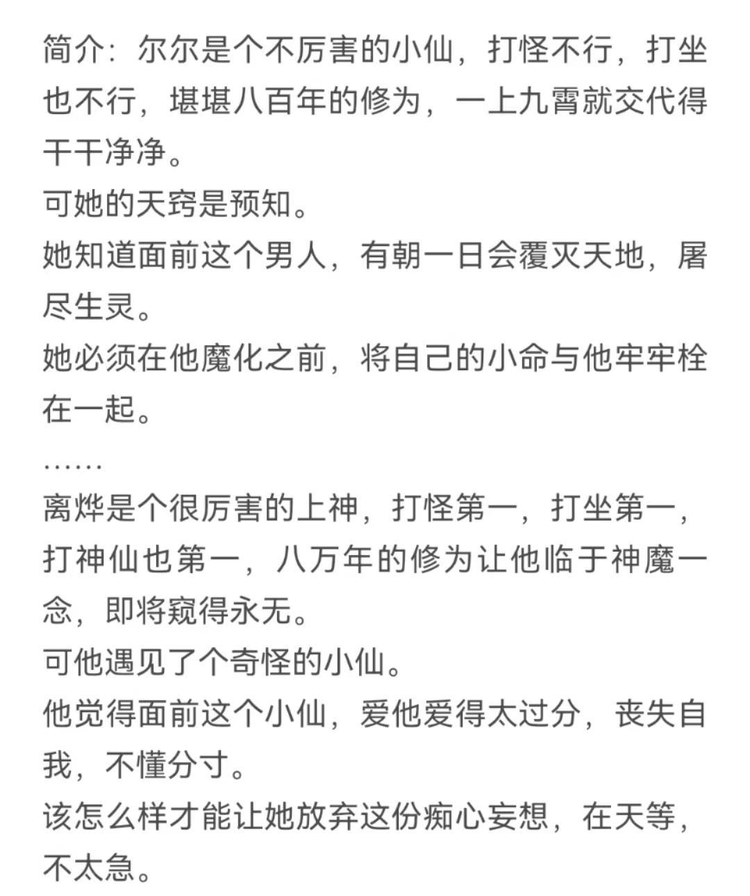 迷糊小仙女主有看到天命的失传技能,为活命榜上日后可能成为魔头的上仙,每天都逗大佬喜欢,希望到末世活下去。