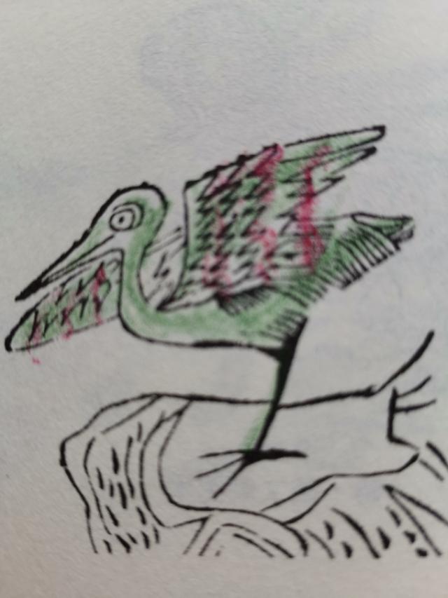“西次三经”:有西二百八十里,曰章莪之山,无草木,多瑶碧,所有鸟焉,其状如鹤,一足,赤文青质而白喙,名曰毕方,其名自叫也,见则其邑有讹火。
