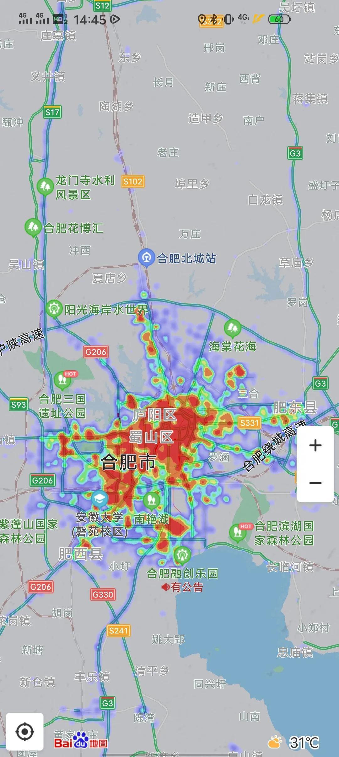 商合杭高铁经过主要城市,区,县,热力图