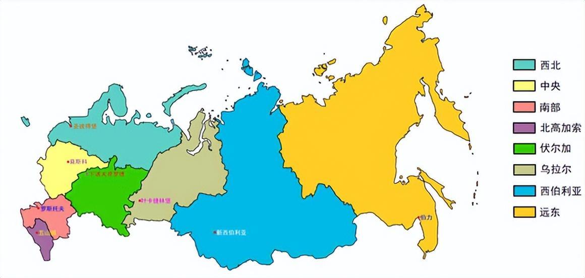 四个国家按照“大区制”的划分,都是8个大区,图中只开列每个地区的最大城市。