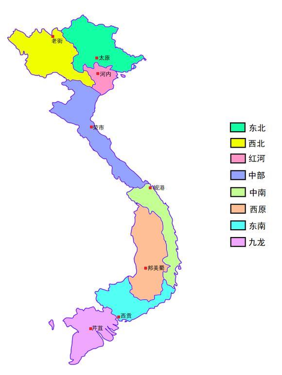 我看了中国的几个邻国的地图,日本、朝鲜、越南、俄罗斯,日本47个县府,朝鲜29个道市,越南63个省,俄罗斯85个州和自治区,都是行政区划分的特别细碎的,地图看起来非常别扭,所以就按照非行政区的“大区”做了份简明的区划图。
