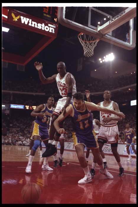 进入总决赛阶段,公牛队和乔丹的对手是魔术师约翰逊领衔的洛杉矶湖人队,按照以往球队的历史,无疑湖人队是历史强队,而魔术师也是总决赛常客,所以年轻的公牛队,总决赛经验难免欠佳,第一场公牛输给了湖人队。