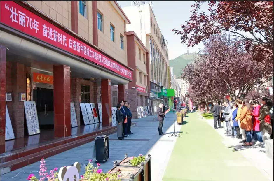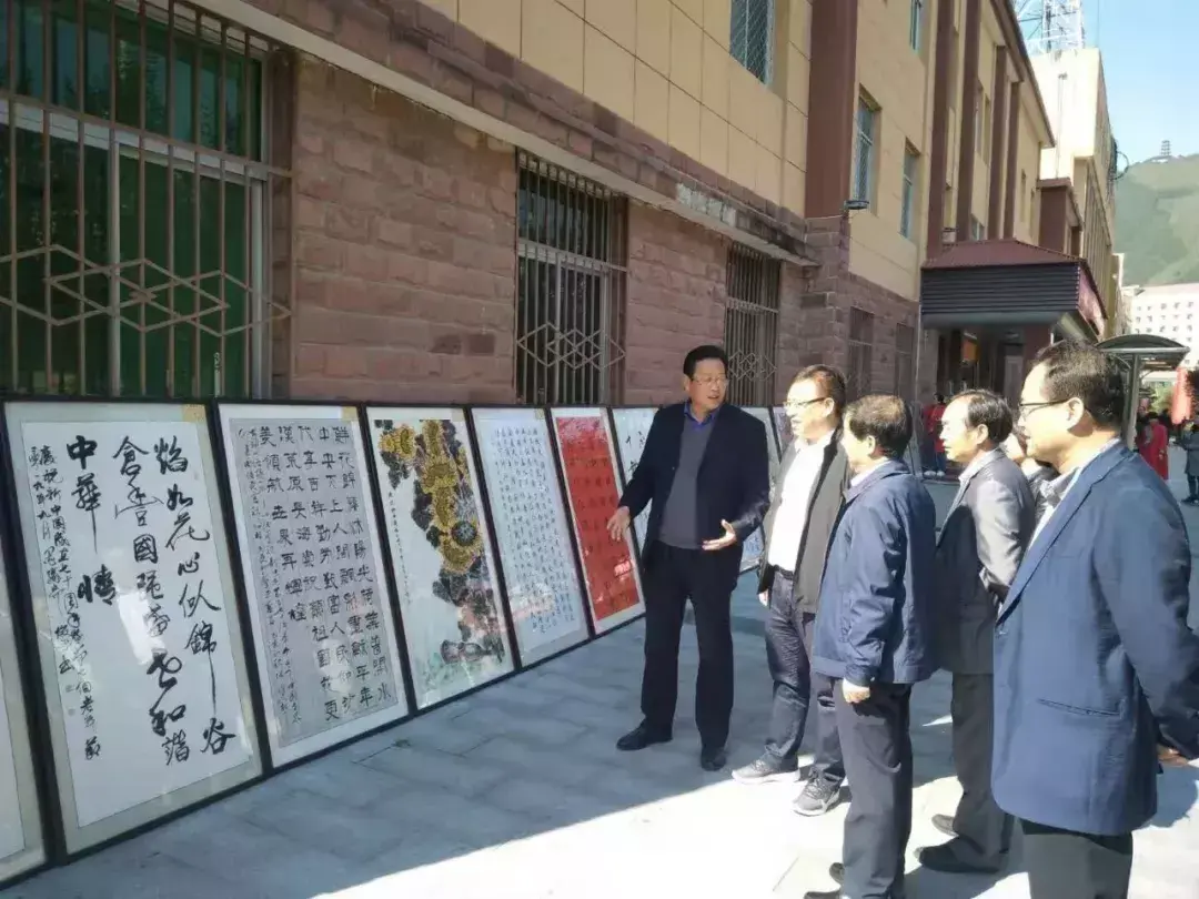 近日,太白县纪念新中国成立70周年书画展在县政务大厅门前展出,45幅作品和市民见面。