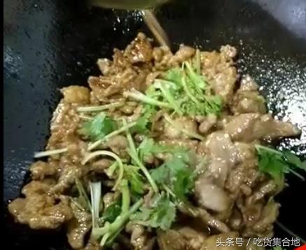 这时候我们重新给锅里下一点油,放入蒜末,香菜段,鸡汁,味精,鸡精,糖,胡椒粉,香油。大火翻炒。
