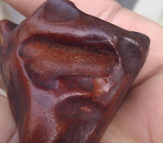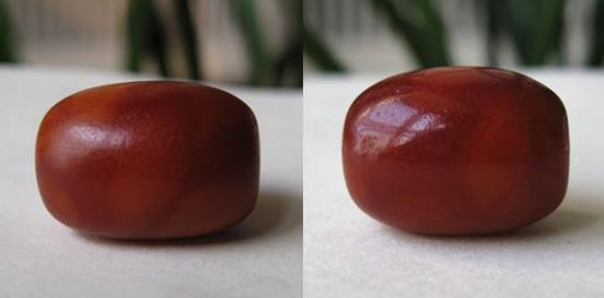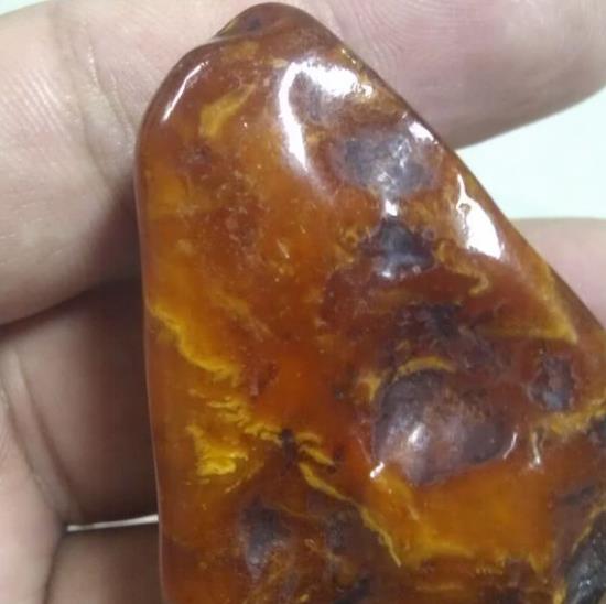 上图是浅黄色的蜜蜡经过盘完后,颜色氧化加深。