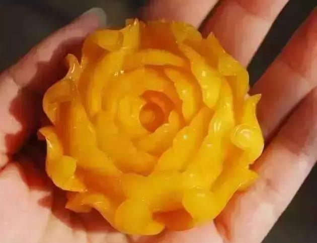 蜜蜡制品的盘玩效果轻易不常见到,因为新蜜蜡通常需要盘玩几十年甚至经过数代人的盘玩才能出现厚厚的包浆。但是老蜜蜡和带皮的原石效果就容易出来了。