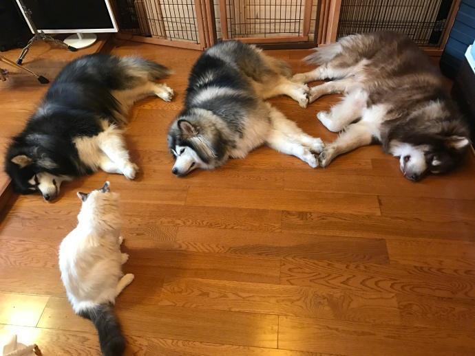 睡觉的三只罐子和猫老板