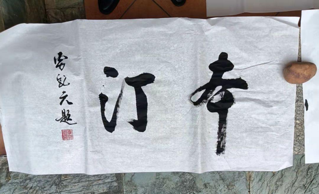 中华人民共和国上将李乾元将军因爱结缘本汀,喜获本汀鱼竿后对本汀鱼竿作品赞赏有加,爱不释手!非常高兴的泼墨挥毫,赠予本汀墨宝一副!