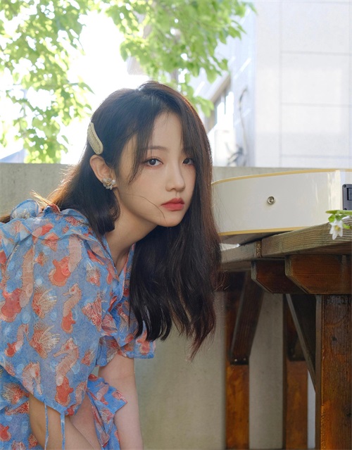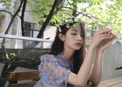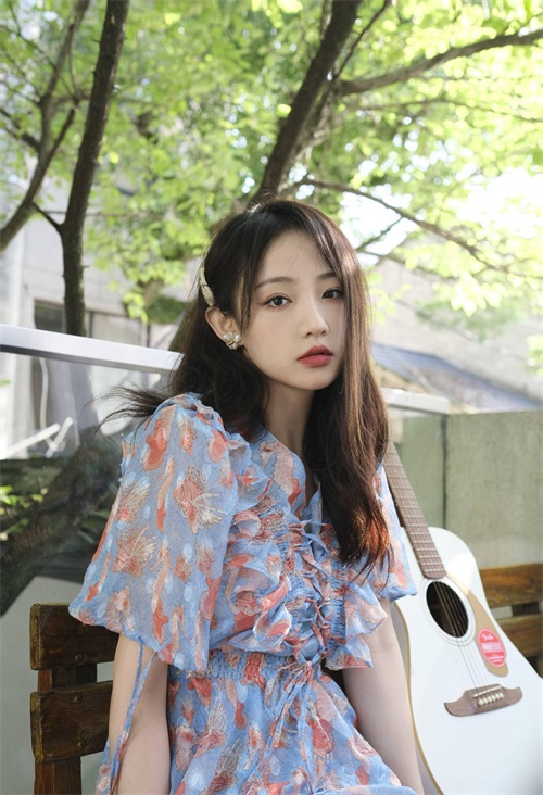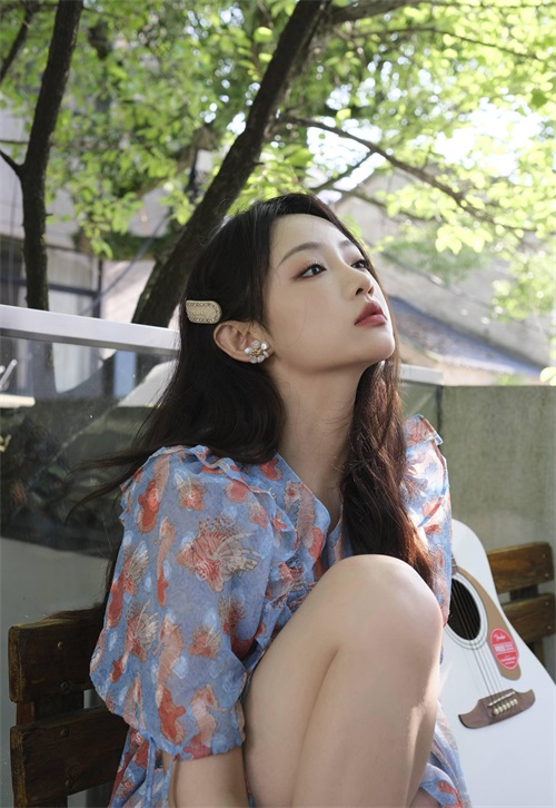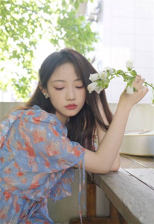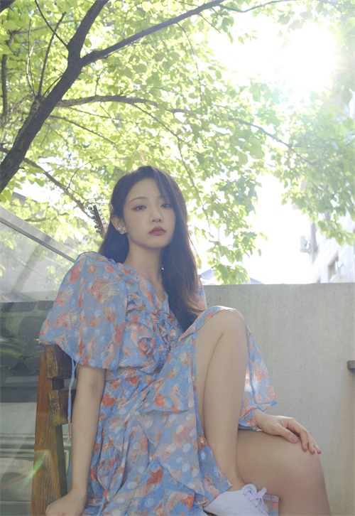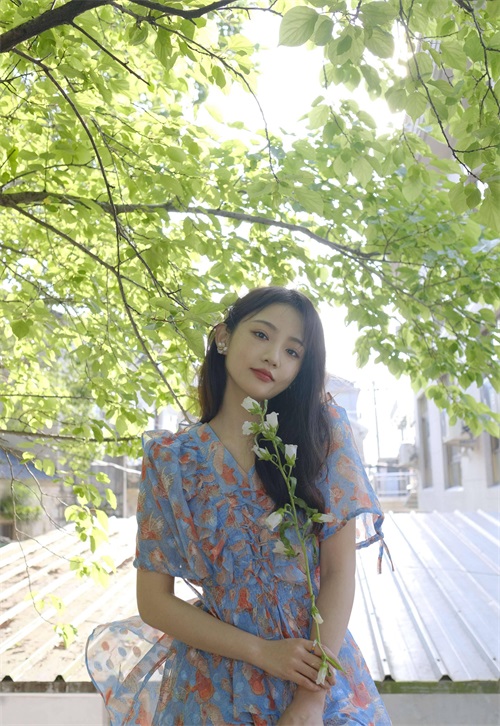孙佳怡碎花连衣裙休闲惬意写真
