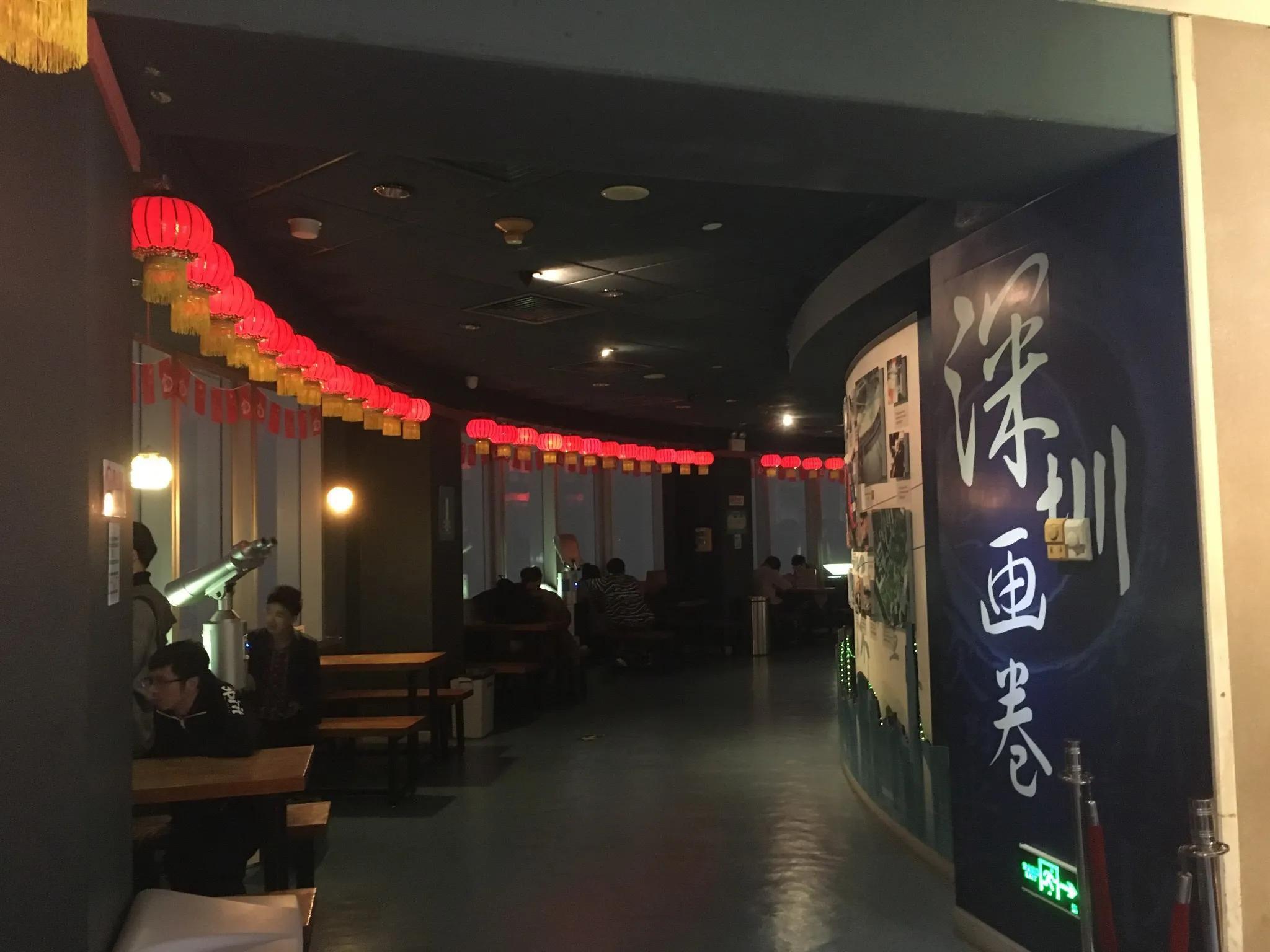 走廊外圈是可以俯瞰深圳的透明玻璃墙,可以坐在椅子上边喝咖啡边欣赏。