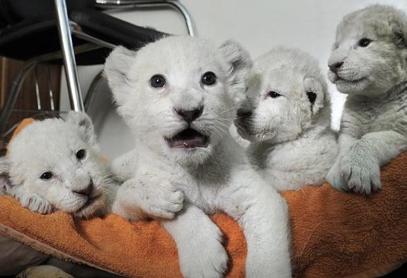 2012年,乌克兰的雅尔塔动物园拥有的不是一只白色的幼狮,而是五个!他们中的三个人出生在野生动物园,另外两个人出生在同一城市雅尔塔的另一个较小的动物园。白狮未归类为白化病,因为它们减少的色素沉着是由两个亲本中都看到的隐性基因(称为颜色抑制剂基因)引起的。这是非常罕见的情况,考虑到同一地区在同一时间出生的幼崽的数量,这种情况更加罕见。