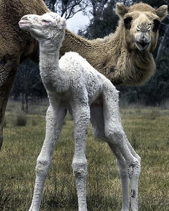 这种白化骆驼极为罕见。乌拉一度被认为是全世界仅有的四只之一,她的父亲是一名色素正常的母亲,她是在澳大利亚新南威尔士州的金德勒种马场出生的。刚出生的骆驼通常是白色的,但是随着年龄的增长,它们通常会变成棕色。