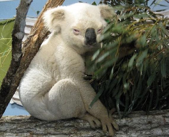 我对这个小动物感到满意,在圣地亚哥动物园,他的照顾者给他起了一个令人毛骨悚然的名字“鬼男孩”。当在母亲的子宫中度过六个月后,他突然抬起头,用震惊的粉红色眼睛环顾四周时,他们的惊奇就完全了。父母双方都是正常的颜色,人们认为他是世界上唯一被囚禁的白化考拉。